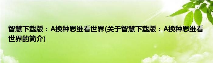 大家好,智慧下载版:A换种思维看世界,关于智慧下载版:A换种思维看世界的简介很多人还不知道,现在让我们一起来看看吧!