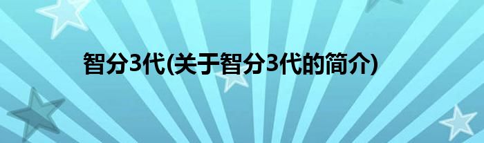 大家好,智分3代,关于智分3代的简介很多人还不知道,现在让我们一起来看看吧!