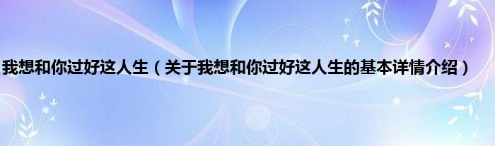 本文关于我想和你过好这人生的基本详情介绍就讲解完毕,希望对大家有所帮助。