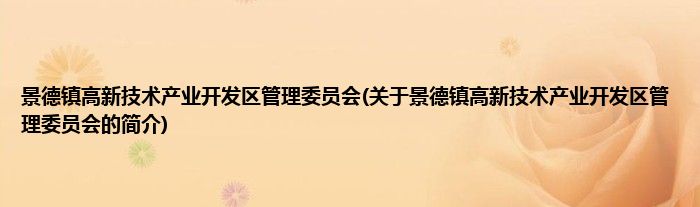 大家好,景德镇高新技术产业开发区管理委员会,关于景德镇高新技术产业开发区管理委员会的简介很多人还不知道,现在让我们一起来看看吧!