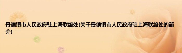 本文关于景德镇市人民政府驻上海联络处的简介就讲解完毕,希望对大家有所帮助。
