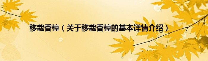 本文关于移栽香樟的基本详情介绍就讲解完毕,希望对大家有所帮助。