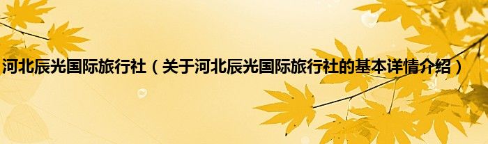 本文关于河北辰光国际旅行社的基本详情介绍就讲解完毕,希望对大家有所帮助。
