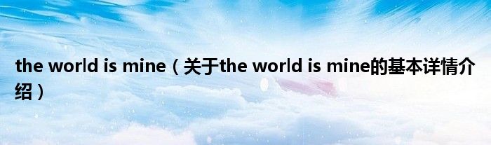 本文关于the world is mine的基本详情介绍就讲解完毕,希望对大家有所帮助。