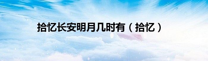 大家好,小问来为大家解答以上问题。拾忆长安明月几时有,拾忆这个很多人还不知道,现在让我们一起来看看吧!