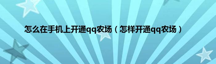 以上就是【怎么在手机上开通qq农场,怎样开通qq农场】相关内容。
