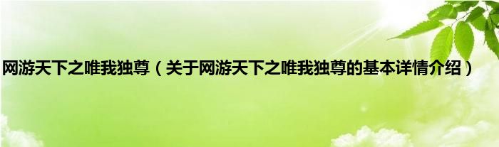本文关于网游天下之唯我独尊的基本详情介绍就讲解完毕,希望对大家有所帮助。