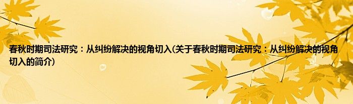 本文关于春秋时期司法研究:从纠纷解决的视角切入的简介就讲解完毕,希望对大家有所帮助。