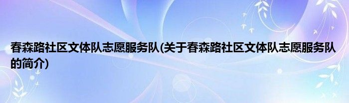 本文关于春森路社区文体队志愿服务队的简介就讲解完毕,希望对大家有所帮助。