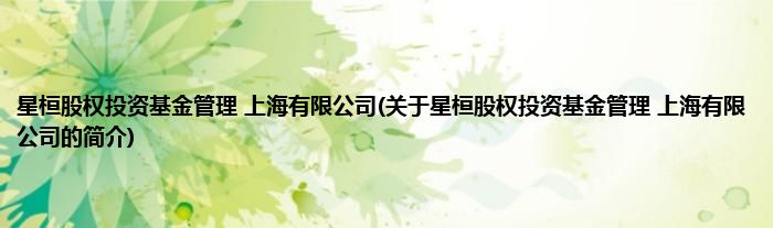 本文关于星桓股权投资基金管理 上海有限公司的简介就讲解完毕,希望对大家有所帮助。