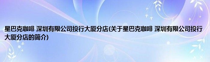本文关于星巴克咖啡 深圳有限公司投行大厦分店的简介就讲解完毕,希望对大家有所帮助。
