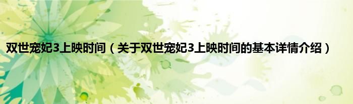 本文关于双世宠妃3上映时间的基本详情介绍就讲解完毕,希望对大家有所帮助。