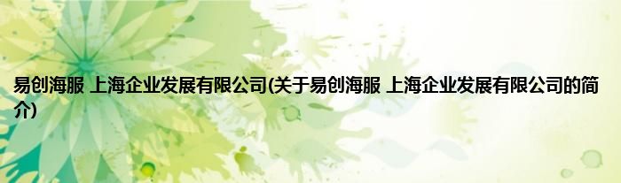 本文关于易创海服 上海企业发展有限公司的简介就讲解完毕,希望对大家有所帮助。