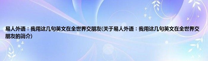 本文关于易人外语:我用这几句英文在全世界交朋友的简介就讲解完毕,希望对大家有所帮助。