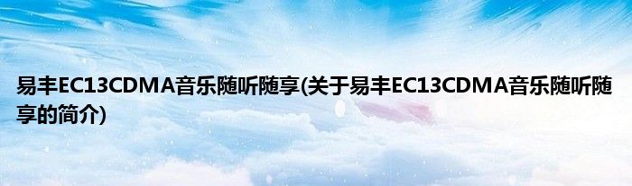 本文关于易丰EC13CDMA音乐随听随享的简介就讲解完毕,希望对大家有所帮助。