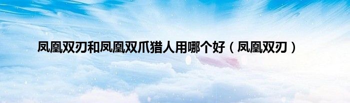 以上就是【凤凰双刃和凤凰双爪猎人用哪个好,凤凰双刃】相关内容。