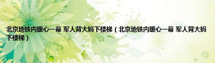 大家好,小问来为大家解答以上问题。北京地铁内暖心一幕 军人背大妈下楼梯,北京地铁内暖心一幕 军人背大妈下楼梯这个很多人还不知道,现在让我们一起来看看吧!