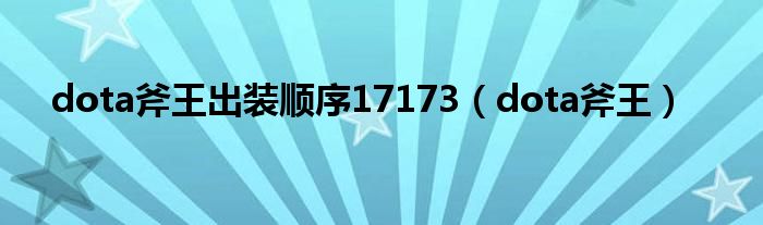 大家好,小问来为大家解答以上问题。dota斧王出装顺序17173,dota斧王这个很多人还不知道,现在让我们一起来看看吧!