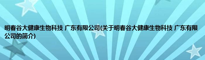 本文关于明春谷大健康生物科技 广东有限公司的简介就讲解完毕,希望对大家有所帮助。