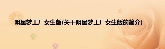 大家好,明星梦工厂女生版,关于明星梦工厂女生版的简介很多人还不知道,现在让我们一起来看看吧!