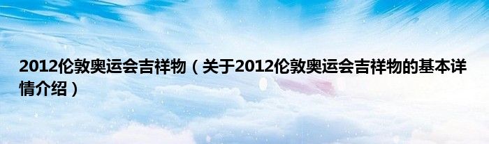 本文关于2012伦敦奥运会吉祥物的基本详情介绍就讲解完毕,希望对大家有所帮助。
