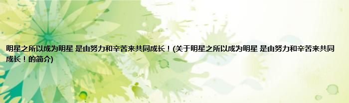 本文关于明星之所以成为明星,是由努力和辛苦来共同成长!的简介就讲解完毕,希望对大家有所帮助。