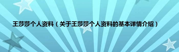 本文关于王莎莎个人资料的基本详情介绍就讲解完毕,希望对大家有所帮助。