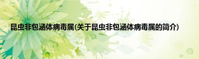 本文关于昆虫非包涵体病毒属的简介就讲解完毕,希望对大家有所帮助。