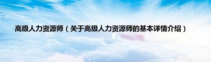 高级人力资源师(关于高级人力资源师的基本详情介绍)