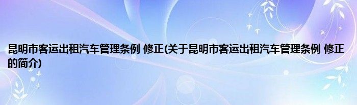 本文关于昆明市客运出租汽车管理条例 修正的简介就讲解完毕,希望对大家有所帮助。