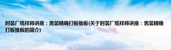 本文关于时装厂纸样师讲座:男装精确打板推板的简介就讲解完毕,希望对大家有所帮助。