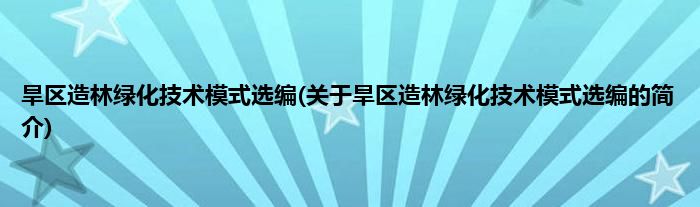 本文关于旱区造林绿化技术模式选编的简介就讲解完毕,希望对大家有所帮助。