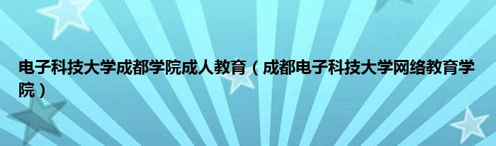 以上就是【电子科技大学成都学院成人教育,成都电子科技大学网络教育学院】相关内容。