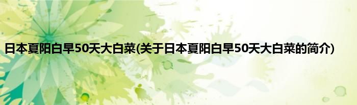 本文关于日本夏阳白早50天大白菜的简介就讲解完毕,希望对大家有所帮助。
