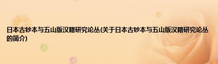 本文关于日本古钞本与五山版汉籍研究论丛的简介就讲解完毕,希望对大家有所帮助。