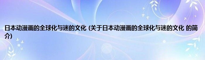 大家好,日本动漫画的全球化与迷的文化。,关于日本动漫画的全球化与迷的文化。的简介很多人还不知道,现在让我们一起来看看吧!