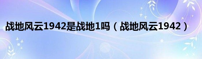 大家好,小问来为大家解答以上问题。战地风云1942是战地1吗,战地风云1942这个很多人还不知道,现在让我们一起来看看吧!