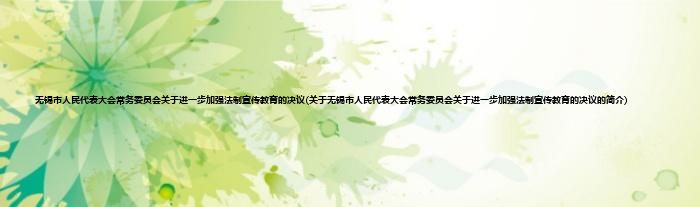 本文关于无锡市人民代表大会常务委员会关于进一步加强法制宣传教育的决议的简介就讲解完毕,希望对大家有所帮助。
