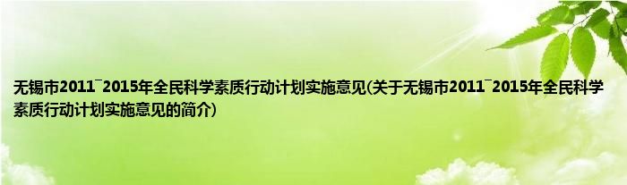 本文关于无锡市2011―2015年全民科学素质行动计划实施意见的简介就讲解完毕,希望对大家有所帮助。