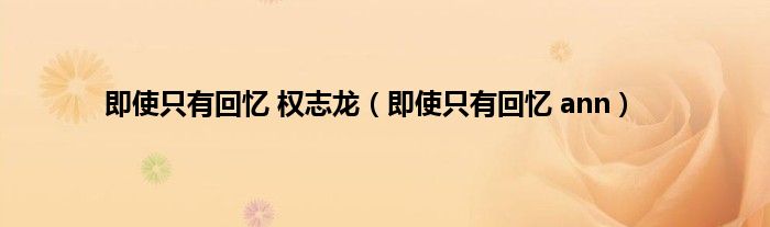 大家好,小问来为大家解答以上问题。即使只有回忆 权志龙,即使只有回忆 ann这个很多人还不知道,现在让我们一起来看看吧!