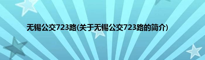 本文关于无锡公交723路的简介就讲解完毕,希望对大家有所帮助。