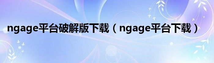 大家好,小问来为大家解答以上问题。ngage平台破解版下载,ngage平台下载这个很多人还不知道,现在让我们一起来看看吧!