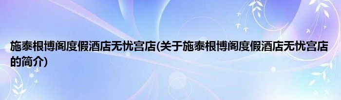 施泰根博阁度假酒店无忧宫店(关于施泰根博阁度假酒店无忧宫店的简介)