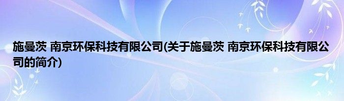 本文关于施曼茨 南京环保科技有限公司的简介就讲解完毕,希望对大家有所帮助。