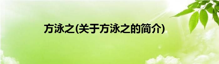 本文关于方泳之的简介就讲解完毕,希望对大家有所帮助。