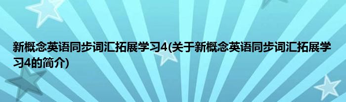 本文关于新概念英语同步词汇拓展学习4的简介就讲解完毕,希望对大家有所帮助。