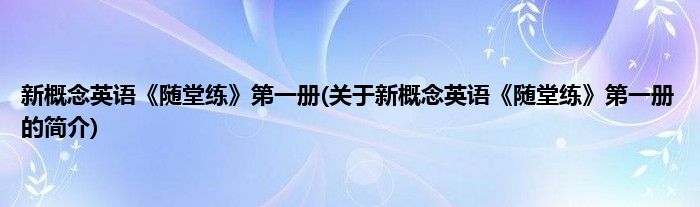 本文关于新概念英语《随堂练》第一册的简介就讲解完毕,希望对大家有所帮助。