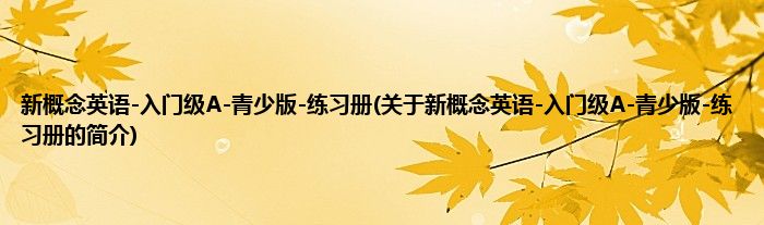 本文关于新概念英语-入门级A-青少版-练习册的简介就讲解完毕,希望对大家有所帮助。