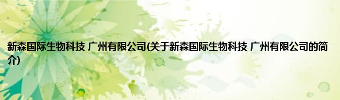 本文关于新森国际生物科技 广州有限公司的简介就讲解完毕,希望对大家有所帮助。