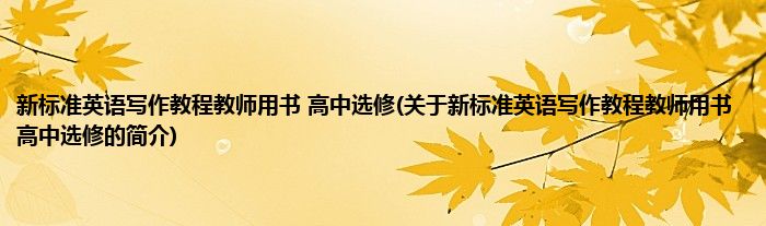 本文关于新标准英语写作教程教师用书 高中选修的简介就讲解完毕,希望对大家有所帮助。